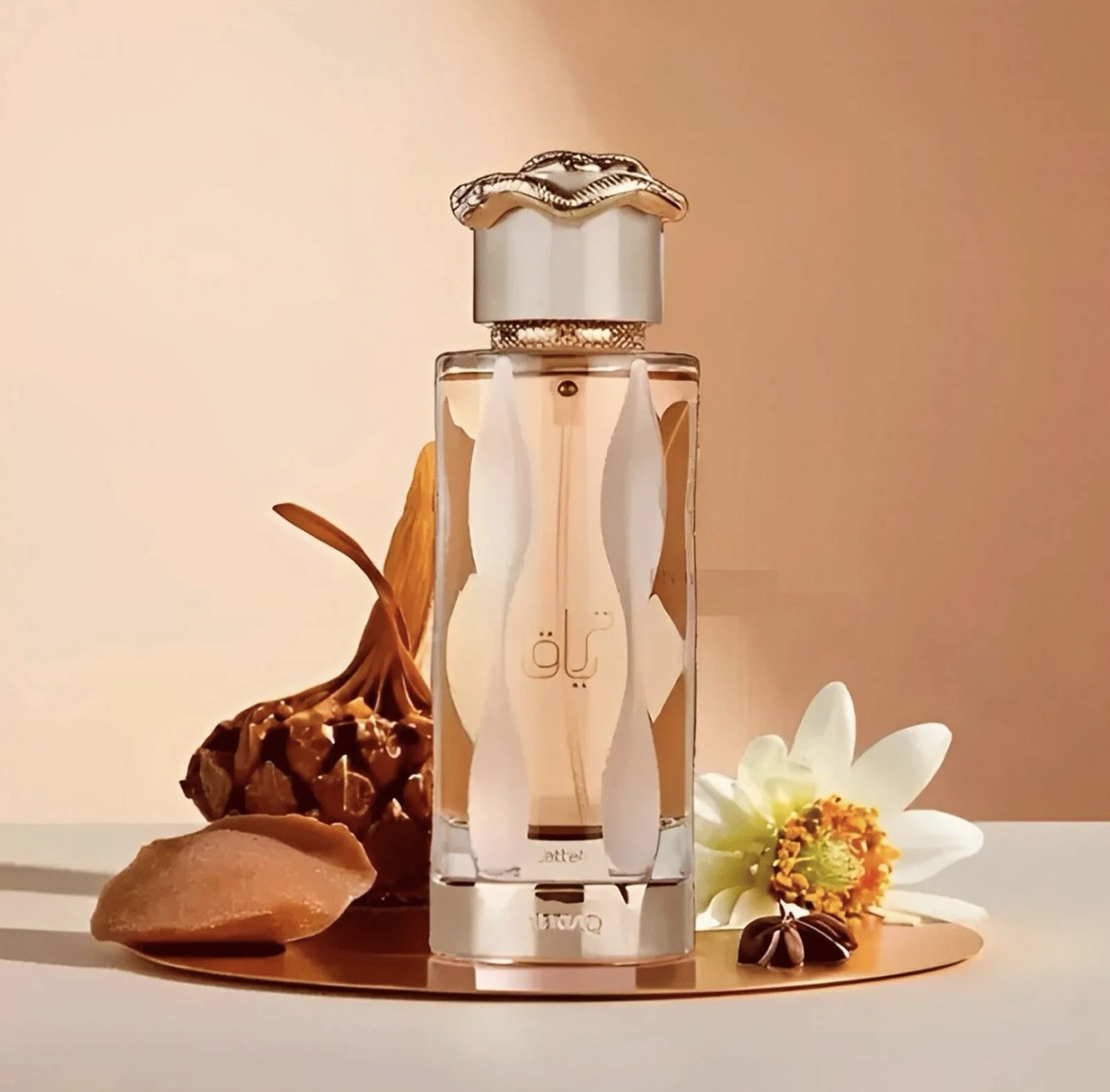 Teriaq by Lattafa Perfumes is a fragrance for women and men. This is a new fragrance. Teriaq was launched in 2024. The nose behind this fragrance is Quentin Bisch. Top notes are Caramel, Bitter Almond, Pink Pepper and Apricot; middle notes are Honey, Rhubarb, White Flowers and Rose; base notes are Leather, Vanilla, Musk, Vetiver and Labdanum